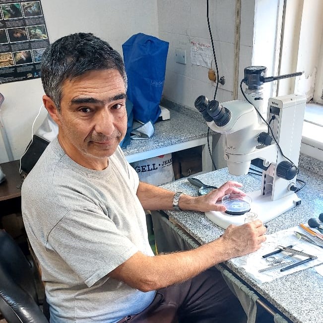 Biólogo/Doctor en Ciencias Biológicas (Universidad Nacional de Córdoba, UNC). Investigador Principal del CONICET (Instituto de Diversidad y Ecología Animal, IDEA, CONICET/UNC). Artista Visual (Licenciado en Pintura, UNC).